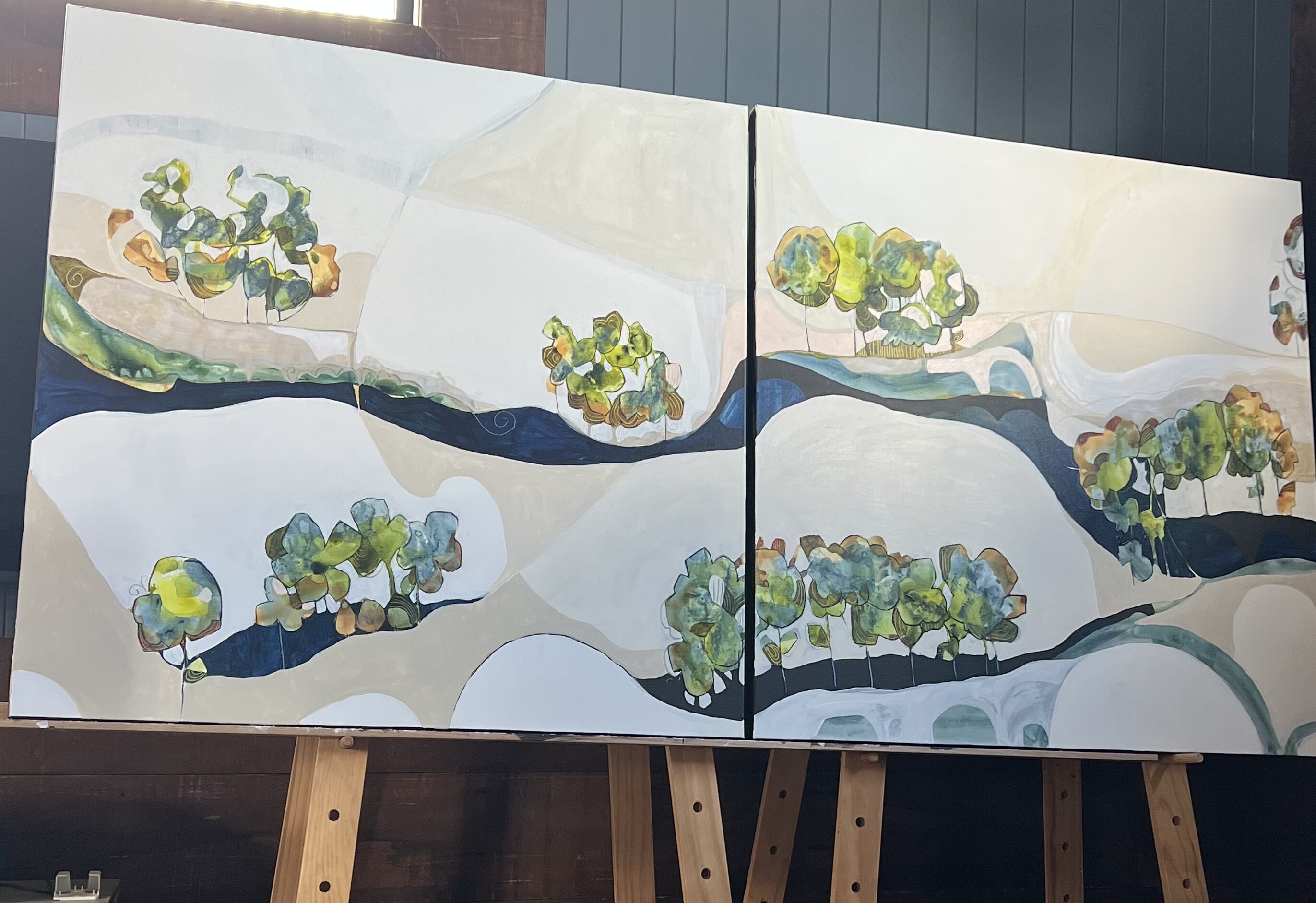I create from the world around me , my thoughts and feelings. When I I pick up a a new canvas, I pour the ink and follow a flow with the paint brush. These two were created to reflect the world and my need for quiet while working through my everything and the inbetween.